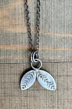 Green Kyanite and Oxidized Sterling Silver Leafy Necklace